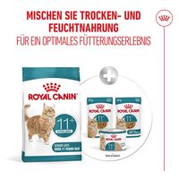 ROYAL CANIN AGEING 11+ STERILISED wurde für Senior Katzen entwickelt und von ihnen getestet. Es enthält leicht zu kauende Kroketten, um Ihrer Katze ein angenehmes Fütterungserlebnis zu bieten.