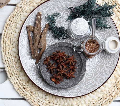 Aufwuchs von Dauergrünland (Wiesenlieschgras, Wiesenschwingel, Wiesenfuchsschwanz, Deutsches Weidelgras, Rotschwingel, Wiesenrispengras, Knaulgras, Honiggras, einjähriges Rispengras, Weiß-Straußgras, Ruchgras, Quecke, Rasenschmiele, Rohrglanzgras, Weißklee, Rotklee, Löwenzahnblätter, Schafgarbenkraut, Spitzwegerich, Wiesenkümmel, Wiesenkerbel, Mädesüß, gewöhnliches Hornkraut, Labkraut, Quendel-Ehrenpreis, Zaunwicke, Beinwell, Acker-Kratzdistel, Gänseblümchen, Gamander-Ehrenpreis, Frauenmantel, große Pimpinelle, schmalblättrige Wicke, Knöllchen-Steinbrech, Wiesen-Kammgras, Frühlingsfingerkraut, Acker-Ehrenpreis, Frühlingshungerblümchen, Herbstlöwenzahn, Rot-Straußgras, Wiesenprimel, kleiner Klee), Haferschälkleie, Weizenkleie, Haferflocken, Malzkeime, Leinsamen (5%), Obsttrester, Anissamen (1%), Süßholzwurzel (0,9%), Schwarzkümmel (0,5%), Isländisch Moos (0,4%)