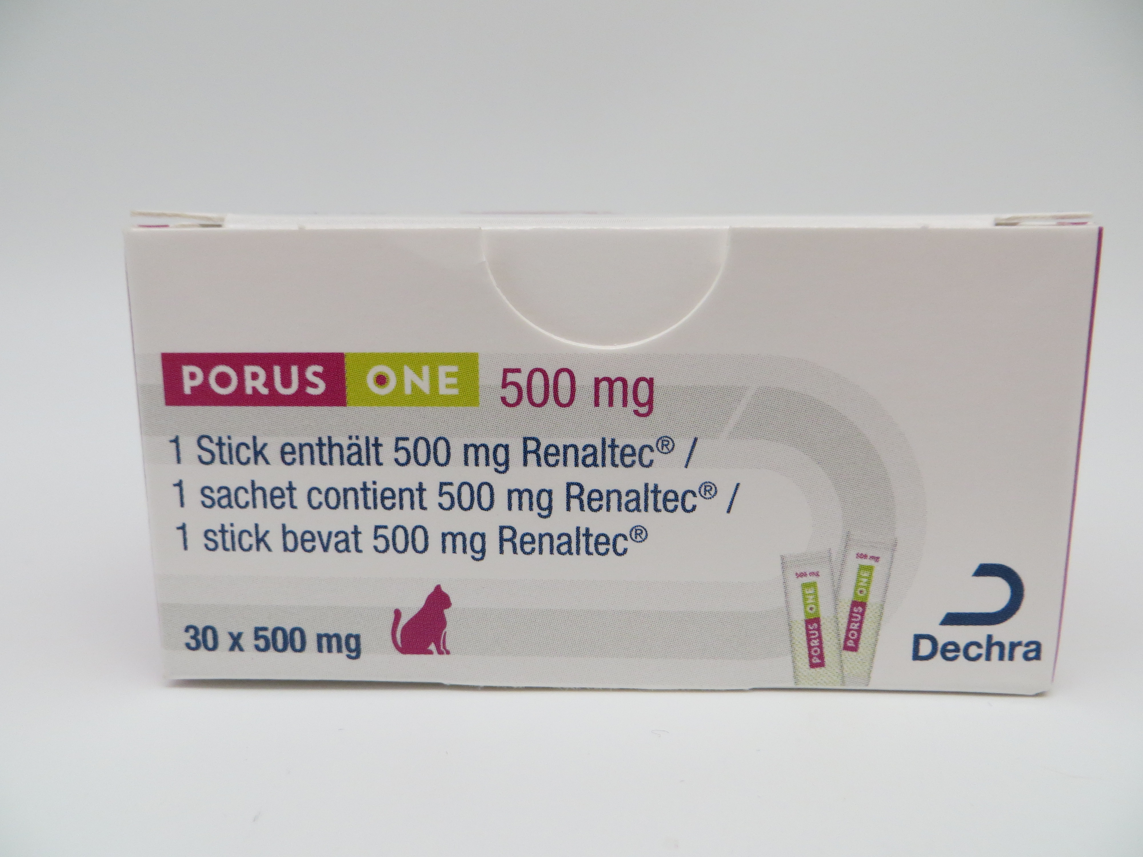 Porus One ist ein Produkt für die Nieren bei Katzen. Porus One nimmt dabei die Vorstufen sogenannter urämischer Toxine, das sind Nierengifte, am Ort ihrer Entstehung im Darm auf und führt sie mit dem Kot ab. Dabei werden alle Porus One-Kügelchen vollständig wieder ausgeschieden. Porus One selbst wird dabei nicht verstoffwechselt und belastet daher den Stoffwechsel der Katze nicht.
