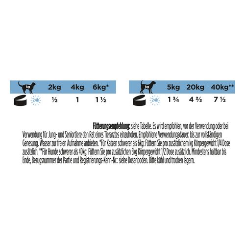 - Für jüngere und ältere Tiere fragen Sie Ihren Tierarzt nach der empfohlenen Fütterungsmenge