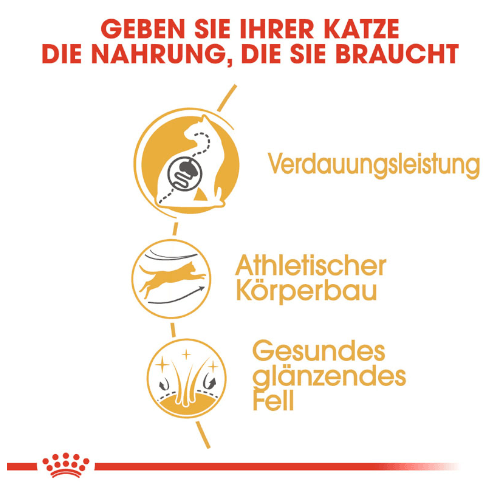 Royal Canin Bengal Adult ist speziell auf die Ernährungsbedürfnisse von Bengal Katzen abgestimmt. Durch einen hohen Protein- und einen angepassten Fettgehalt trägt dieses Futter maßgeblich dazu bei, die Muskelmasse von Bengal Katzen zu erhalten, um so ihren aktiven Lebensstil zu unterstützen.