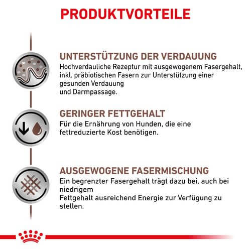 Royal Canin Gastrointestinal Low Fat ist eine ausgewogene und nährstoffreiche Rezeptur, die speziell dazu entwickelt wurde, bei Hunden mit Magen-Darm-Problemen und anderen Erkrankungen, die eine fettarme Ernährung notwendig machen, für eine optimale Verdauung zu sorgen.