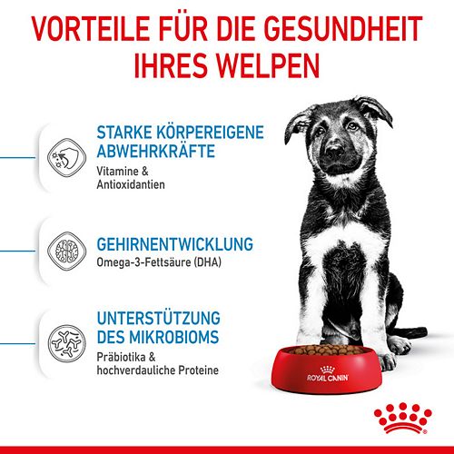 ROYAL CANIN Maxi Puppy ist speziell auf die Ernährungsbedürfnisse eines Welpen großer Rassen abgestimmt. Das Futter eignet sich für große Hundewelpen im Alter von 2-15 Monaten, die im ausgewachsenen Alter ein Gewicht von etwa 26 kg-44 kg erreichen.