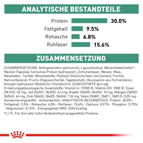 Bei diesem Produkt handelt es sich um eine tierärztliche Nahrung aus dem Sortiment Veterinary Health Nutrition von ROYAL CANIN®. Dementsprechend ist es wichtig, dass das Futter nur auf Empfehlung einer Tierärztin oder eines Tierarztes gefüttert wird. So kann sichergestellt werden, dass Ihr Tier genau die Nahrung erhält, die es wirklich benötigt. Eine Nahrungsumstellung sollte sorgfältig und schrittweise über einen Zeitraum von 7–10 Tagen erfolgen. Achten Sie auf die korrekte Portionsgröße – insbesondere bei Mischfütterung.