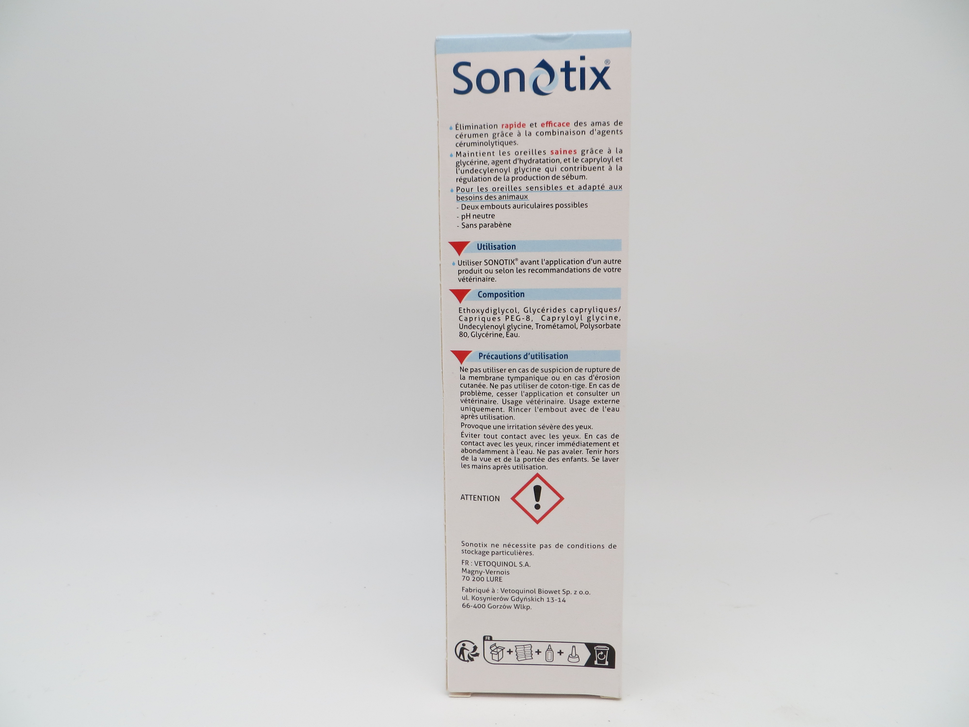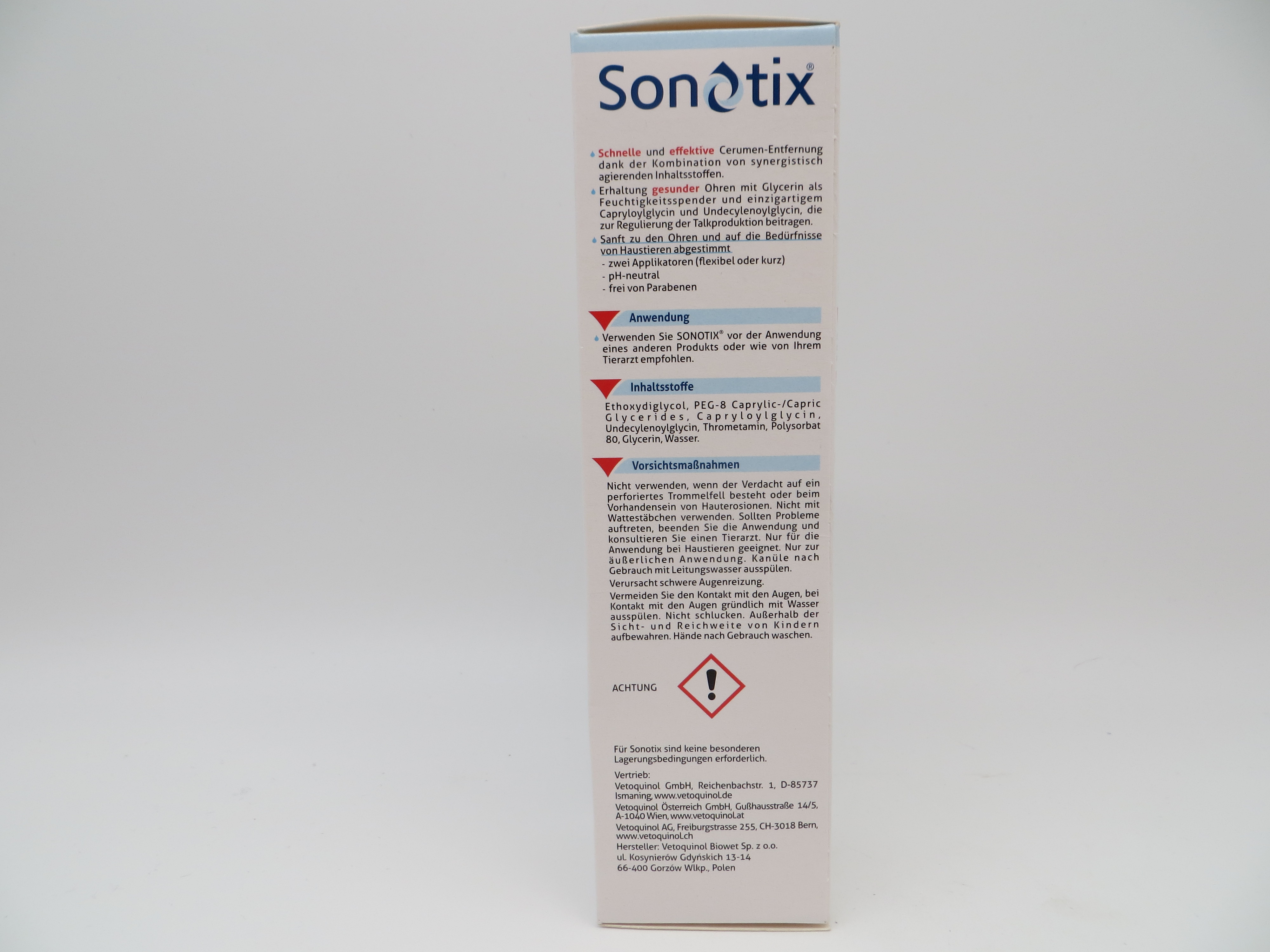 Produktinformationen "Sonotix Ohrenreiniger für Hunde und Katzen bei Ohrenschmalz von Vetoquinol 120 ml"